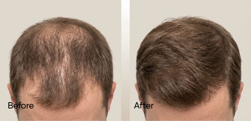 Thicker and stronger strands and now seen and improved coverage in hairline, temples, and crown.