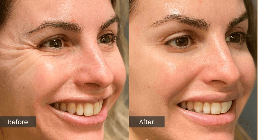 - Crow’s Feet: Reduce eye wrinkles. For those who notice a small bulge under the eyes when smiling, Botox for jelly rolls can help smooth the area for a natural, refreshed look.