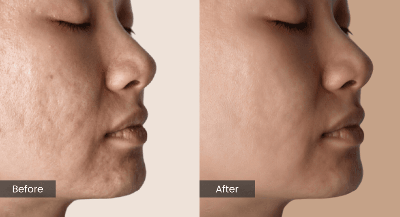 Enlarged pores commonly cause the skin to appear rough. The pores are tight and refined through microneedling to give a smoother surface.